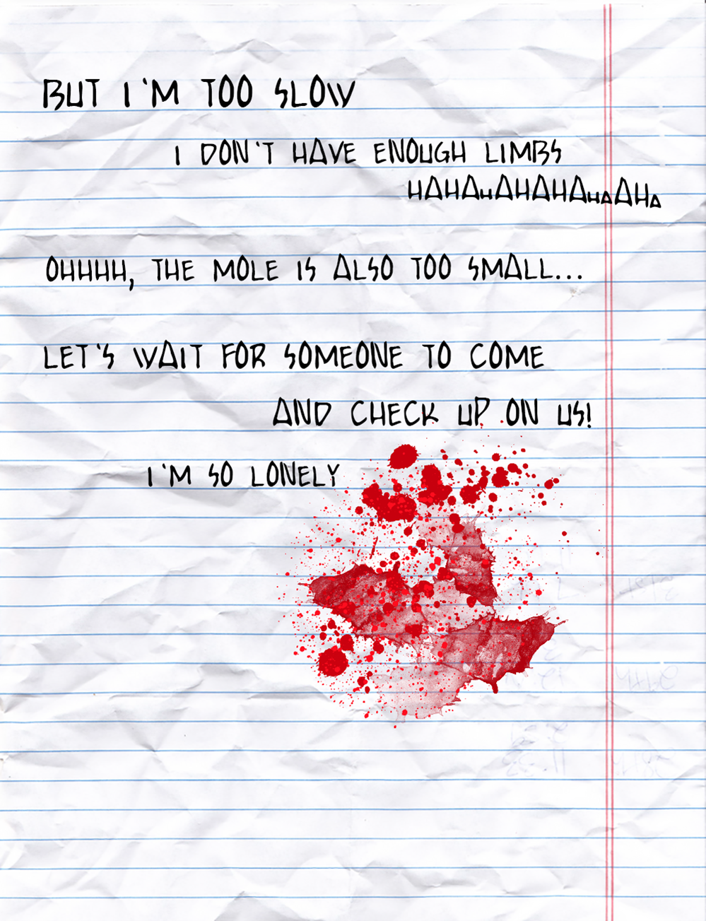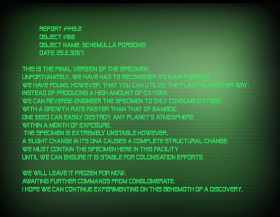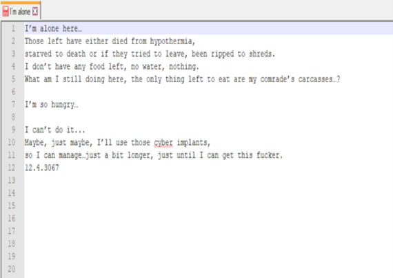 Exploring the narrative like this was a conscious decision to immerse the player within the setting. This is similar to the horror game series Slender Man, however the player is not required to collect the notes as a form of progression.