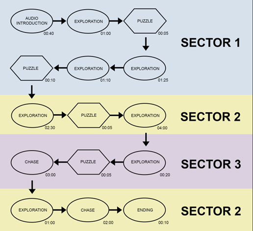 I spearheaded the pre-production phase of the project by assigning roles to those in the team and then creating the initial Lo-fi (Low Fidelity) Prototype of the game’s Level Design, the most integral part of this experience.