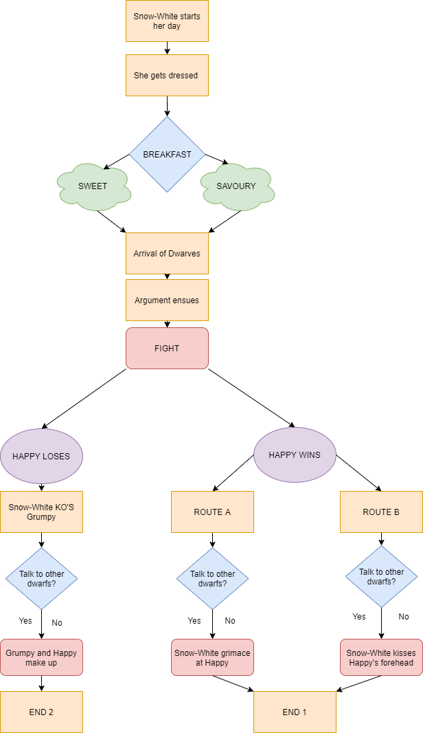Display of the Twine events and how each hypertext element feeds into one another.